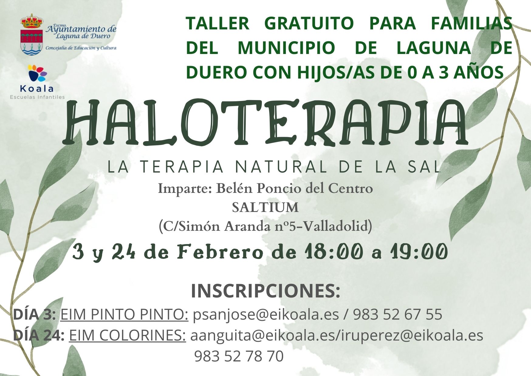 En la escuela infantil se realizan talleres gratuitos para todas las familias del Municipio de Laguna de Duero con hijos e hijas en la primera infancia (0-3 años).